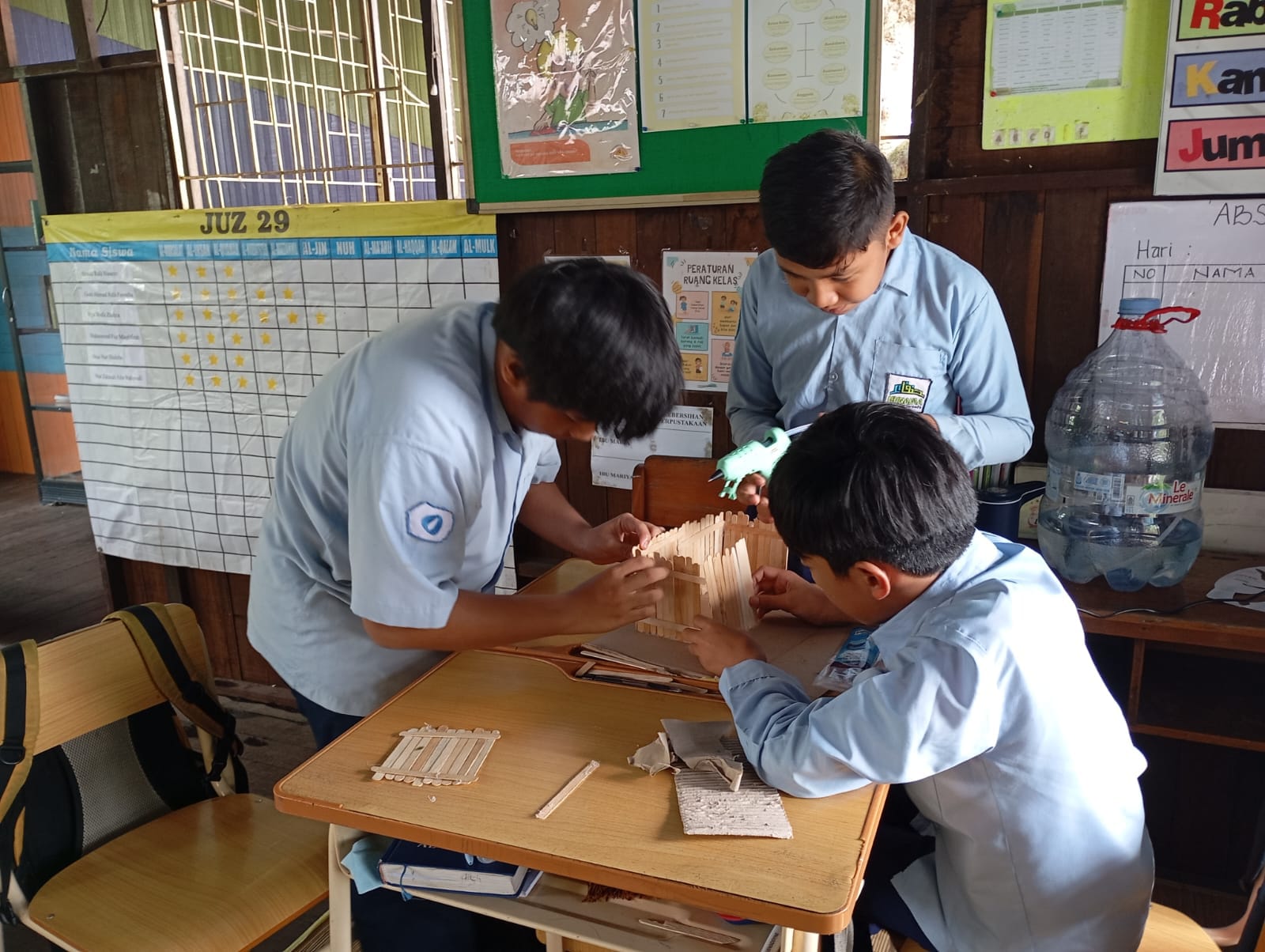 Peserta Didik SDIT Hunafaa Membuat Hasta Karya dari Stik Eskrim