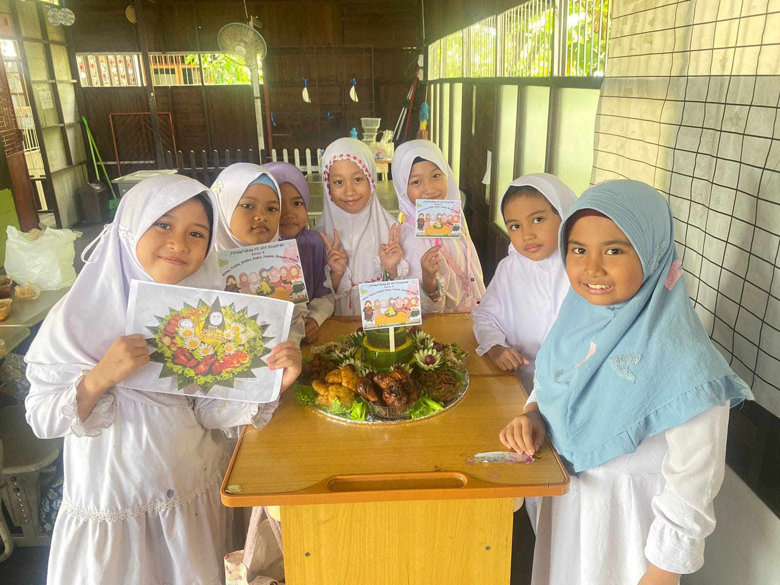 Peserta Didik SDIT Hunafaa Mengias Tumpeng Untuk Acara 17an